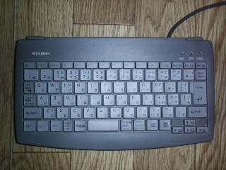 三菱から、以前AMiTYというペン入力のWindows95マシンが出ていたそうで、これはそれの外付けキーボードだそうだ。とてもコンパクトで、これだけを持ち運んでも全く苦にはならない。これだけコンパクトな割には打鍵も割としっかりとしていて(といってもモバイルギア程度といった感じだが)、ブラインドタッチも苦にはならない。確か数年前に帰省したとき、北大の近くの「DO-夢」という店で買ったと思う。