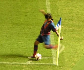 バルセロナ 両ワイドから思い切りよく大胆に攻めるバルセロナのサッカーは素晴らしく、そのアクセントとしてロナウジーニョがかなり機能していた。目立ったのは攻撃時FWがワイドに開いた際に、ロングレンジの強くて長いパスが正確であること。そしてそのパスが通った場合、オートマチックに必ず逆サイドのスペースに誰かがつっこんで厚みを増す。テクニックがある分プレッシャーに対して余裕がある。前日に行くのを決めたにしては、見れて良かった。