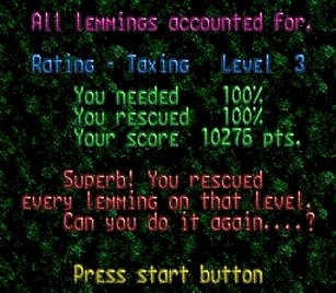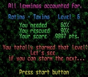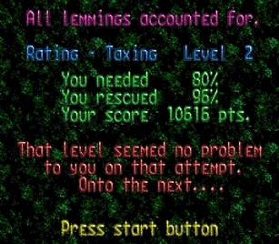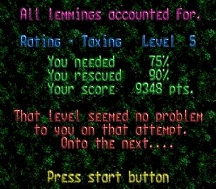 マップはどこかで見た面。忘れた。と同じく出現するレミングス総数=5も同じ。