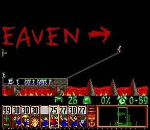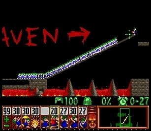 その後リリースレートを99まで一気に上げて、残り5(出現95)ぐらいになったら再び下限まで戻す。そして最後に出現したレミングスを後発部隊として、横掘り→階段。